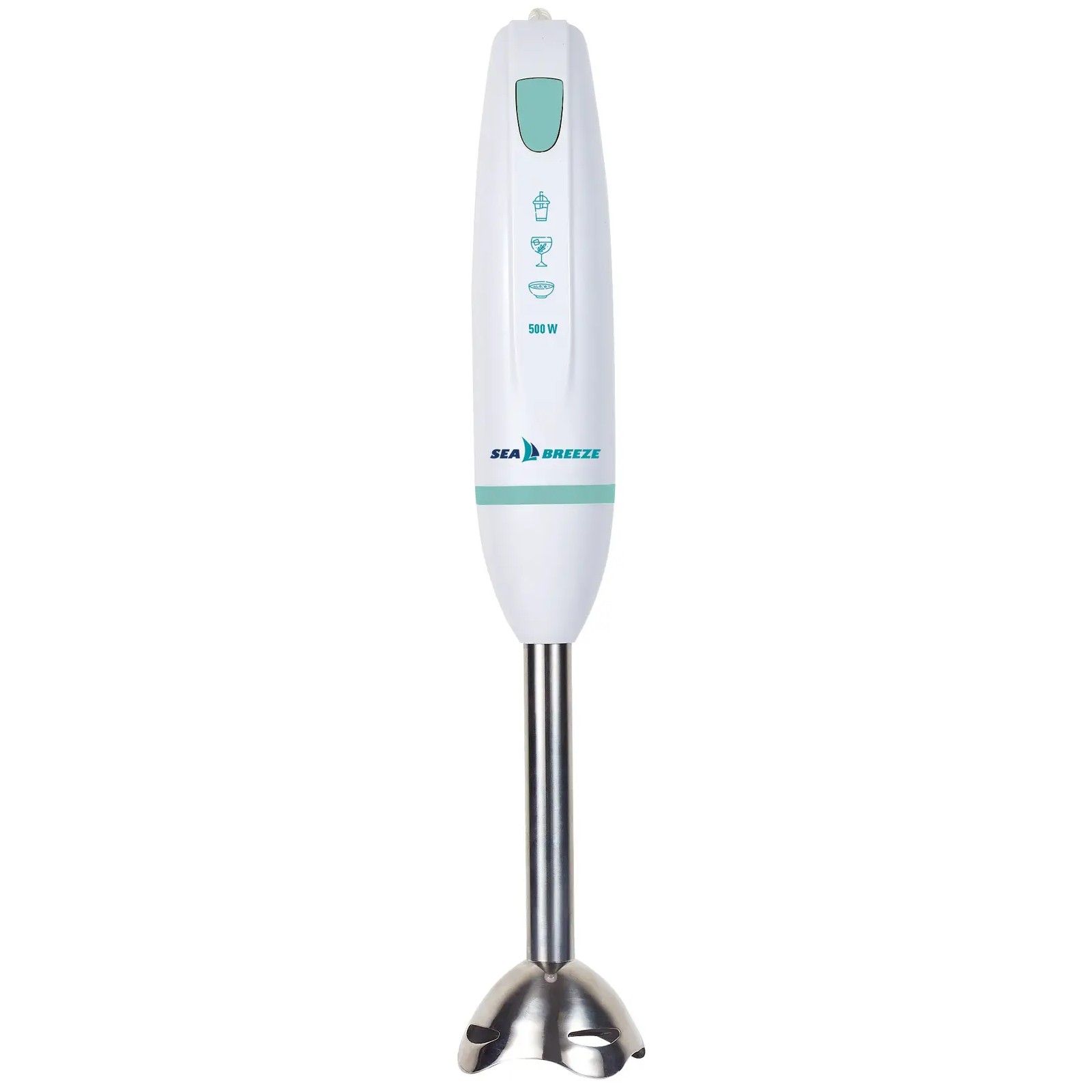 Блендер занурювальний Sea Breeze - ваш надійний помічник. Блендер з потужністю 500 Вт швидко подолає подрібнення або перемішування продуктів. Простий спосіб швидко досягти хороших результатів лише одним натисканням кнопки. М’яка ручка, доступна і велика кнопка забезпечують оптимальний комфорт і контроль блендера під час роботи.