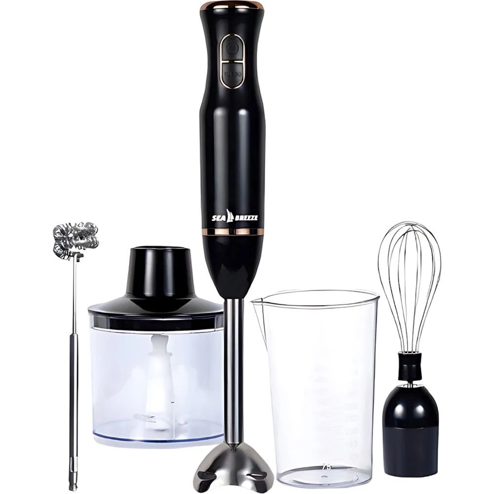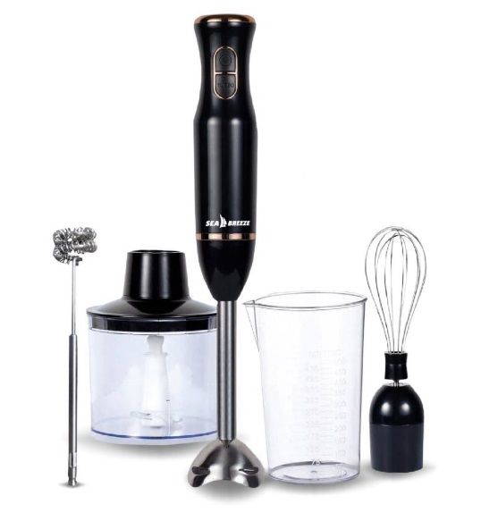 Блендер занурювальний Sea Breeze - ваш надійний помічник. Блендер з потужністю 800 Вт швидко подолає подрібнення або перемішування продуктів. Простий спосіб швидко досягти хороших результатів лише одним натисканням кнопки. М’яка ручка, доступна і велика кнопка забезпечують оптимальний комфорт і контроль блендера під час роботи.