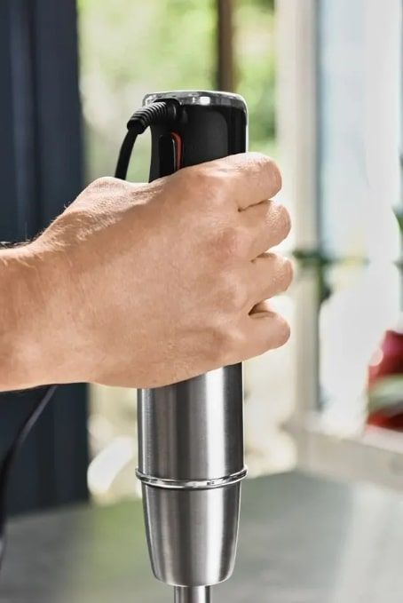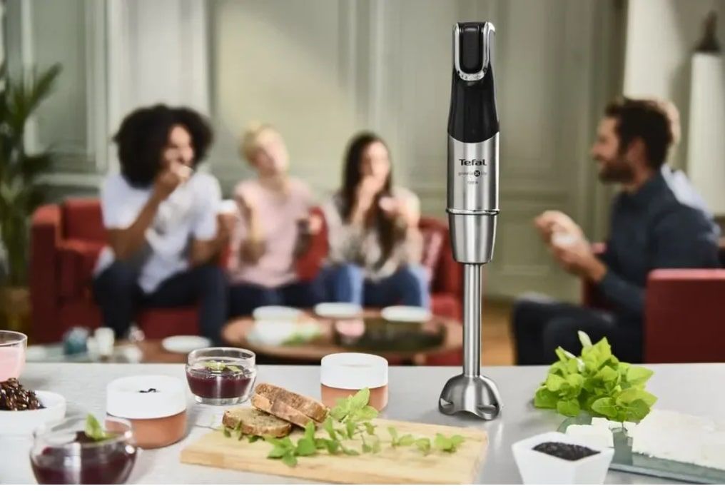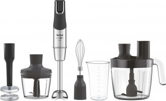 Ручний блендер Quickchef 9 в 1 від Tefal дає змогу готувати безліч різноманітних страв без зусиль. Поєднання ексклюзивної технології Powelix і потужного мотора в 1200 Вт гарантує щоразу високоефективне змішування і гладку текстуру сумішей навіть із твердих інгредієнтів.