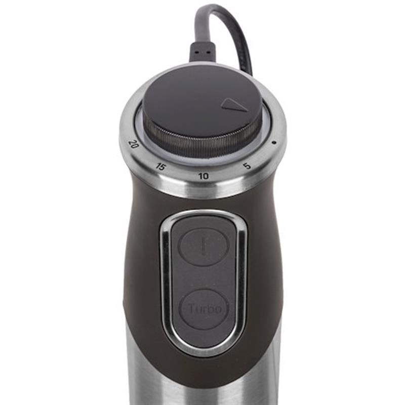 До переваг цієї заглибної моделі, яку можна використовувати і як міксер, належать висока продуктивність, надійність і хороша ергономіка. Прилад підходить для приготування холодних соусів і гарячих супів-пюре. Основні робочі елементи пристрою виконані з якісної нержавіючої сталі. Унікальна технологія лез дає змогу отримувати ідеальну текстуру будь-яких сумішей, а можливість обирати швидкість із 20 доступних режимів гарантує повний контроль над процесом готування.