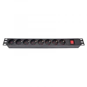 Блок розеток Atcom 1U 19" (PDU-8W-CN-WS) 8 розеток, з вимикачем, ал. корпус, німецький тип, без кабеля