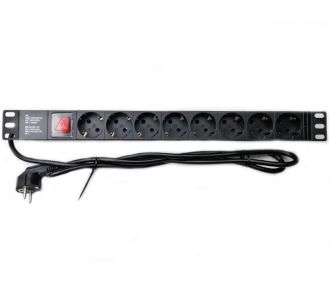 Межовий фільтр 19" на 8 розеток розміром 1U, з вимикачем. Сумарна потужність до 3,5 кВт (16А, 250В). Алюмінієвий корпус, заземлення, кабель живлення довжиною 1,8 м.