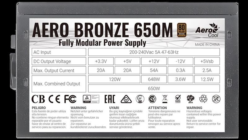 Блок живлення AeroCool Aero Bronze 650M Fully Modular (ACPB-AR65AEC.1M) 650W