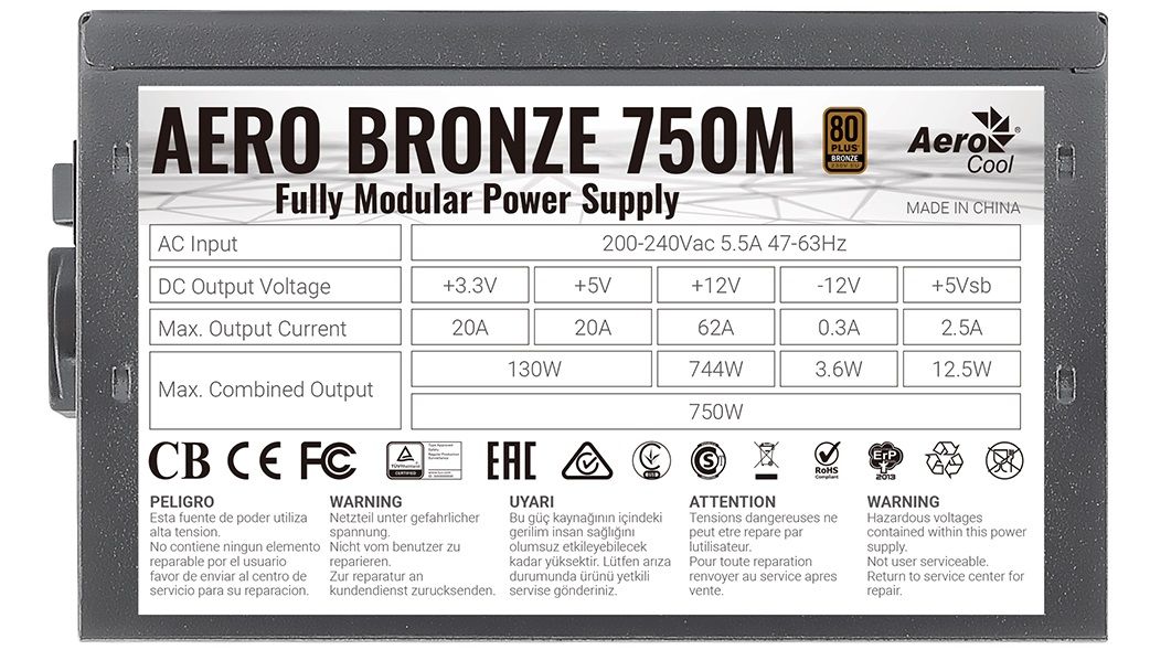 Блок живлення AeroCool Aero Bronze 750M Fully Modular (ACPB-AR75AEC.1M) 750W