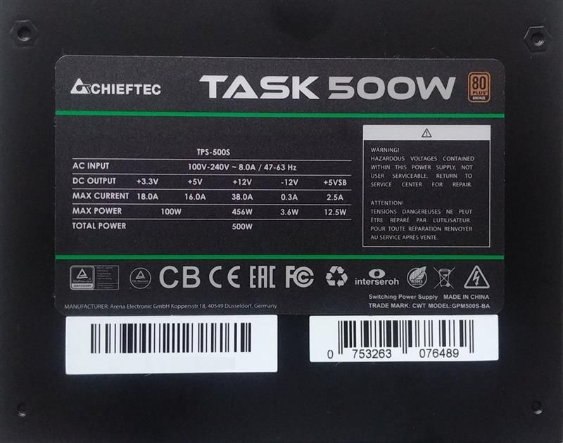 Блок живлення TPS-500S відноситься до інноваційної високотехнологічної серії TASK, що відповідає всім екологічним нормам і діючим стандартам якості як європейського, так і світового ІТ-ринку. Ефективність роботи> 85% в мережах 115-230В і сертифікація за стандартом TUV дозволяють йому стати надійним компаньйоном для будь-яких комп'ютерних систем.