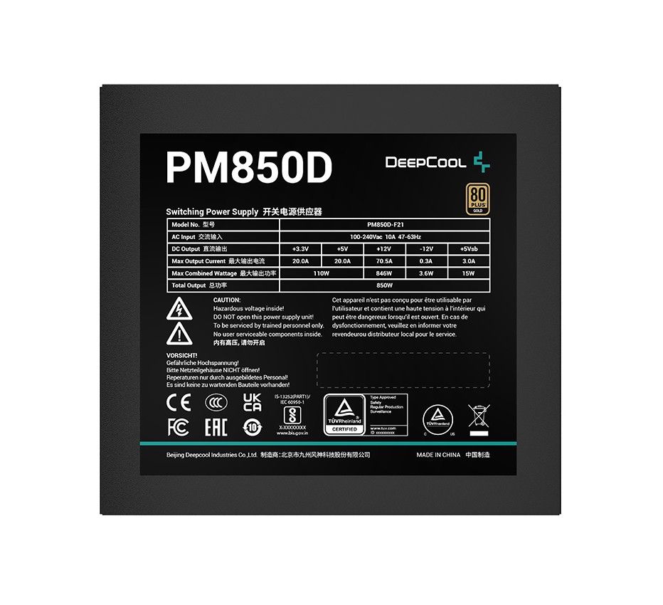 Немодульні блоки живлення серії DeepCool PM850D сертифіковані 80 PLUS Gold для ефективного живлення з чудовою продуктивністю за вигідною ціною.