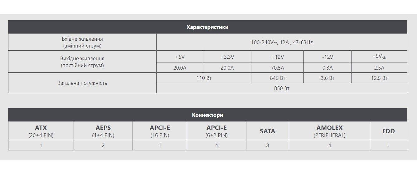 Блок живлення має роз’єм, що сумісний із PCIe 5.0 і Intel PSDG (Керівницство з розробки блоків живлення) ATX 3.0. Цей блок живлення може витримати до 2-кратного короткочасного збільшенння загального живлення та 3-кратного короткочасного збільшеня живлення відеокарти.