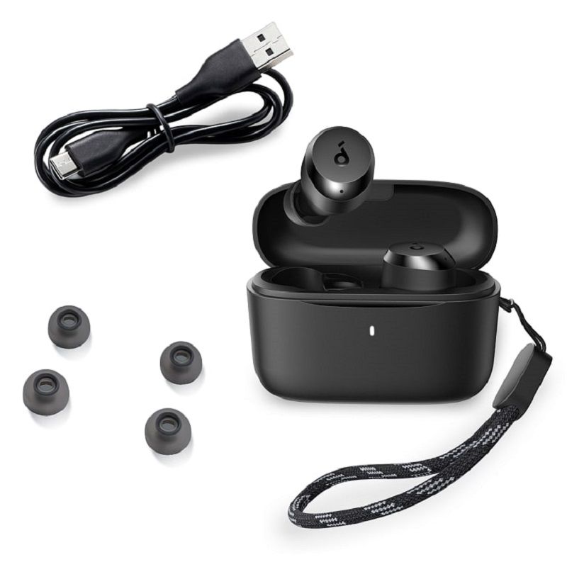 Навушники Soundcore A25i (A20i) маленькі та легкі для комфортного носіння, а компактний зарядний кейс легко поміщається в невеликі сумки або кишені. Їхня вага разом із футляром становить лише 41г. У комплекті йде ремінець, завдяки якому ви можете прикріпити зарядний кейс до сумки або поясу та легко брати навушники з собою.