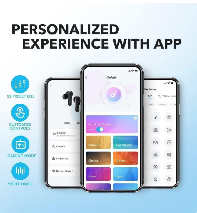 Soundcore R50i (P20i) забезпечує безперебійне з’єднання Bluetooth, дозволяючи вам легко підключатися до ваших улюблених пристроїв. Незалежно від того, тренуєтеся ви, їдете на роботу або просто насолоджуєтеся улюбленими мелодіями, ці навушники забезпечать неперевершену якість бездротового зв’язку.