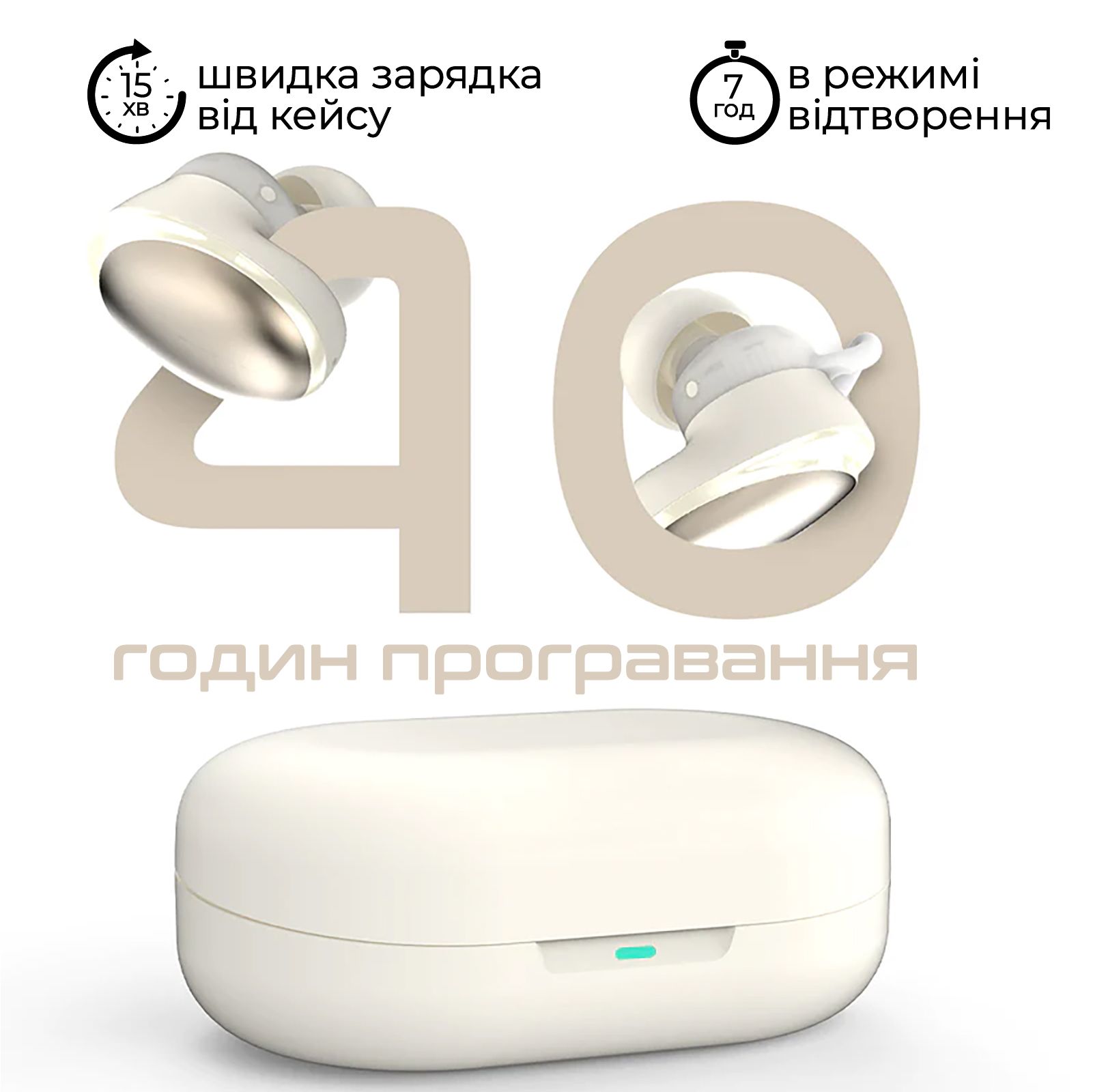Функція швидкого заряджання: Просто поклади навушники на 15 хвилин в кейс і насолоджуйся музикою цілу годину. Сам кейс заряджається через бездротову зарядку або USB-C порт.