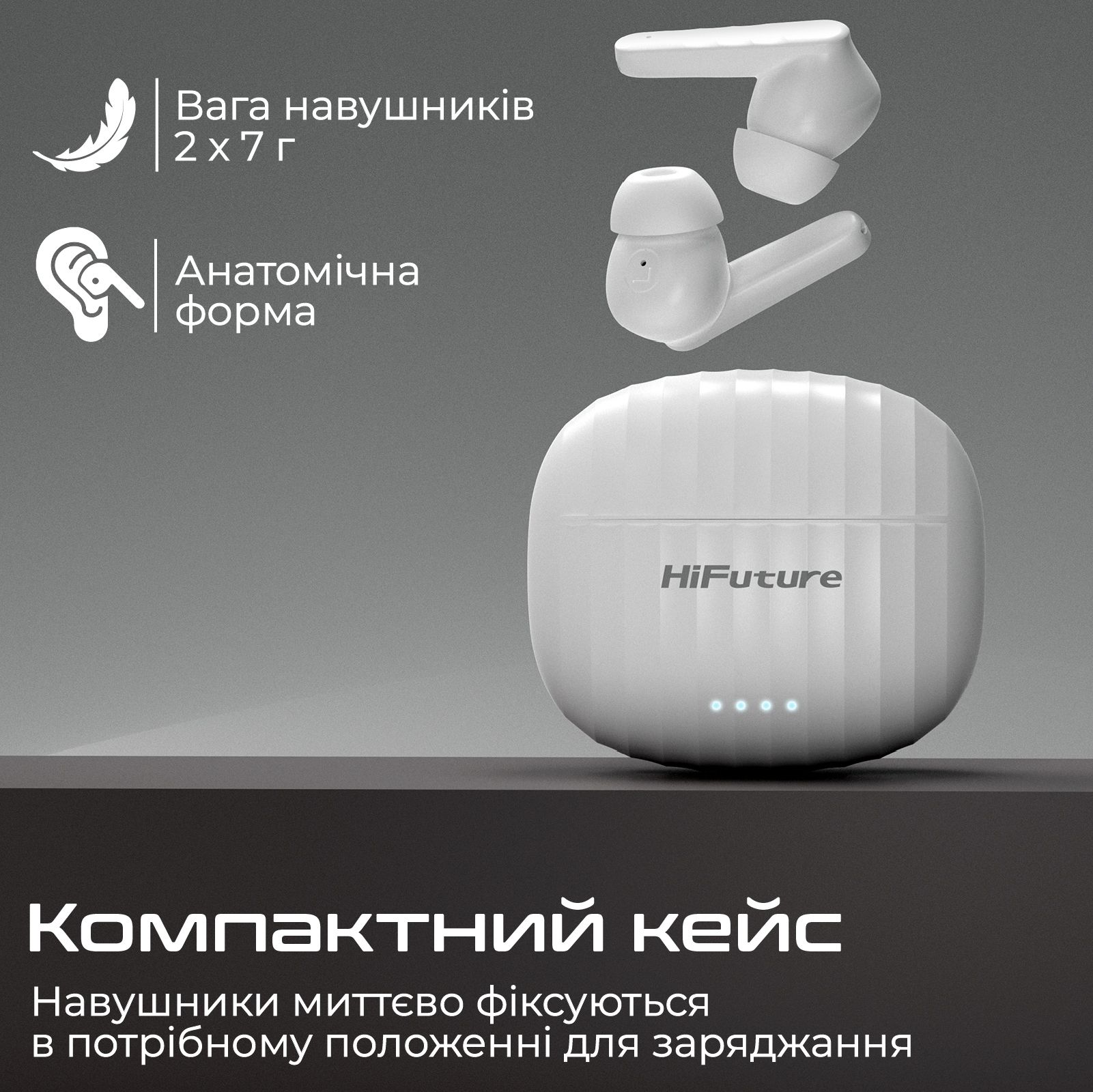 Збалансований Hi-Res звук, чутливий мікрофон, свіжа версія Bluetooth 5.3 і стильний зовнішній вигляд. HiFuture SonicBliss - витончений дизайн, комфортна посадка, все це робить навушники ідеальними.