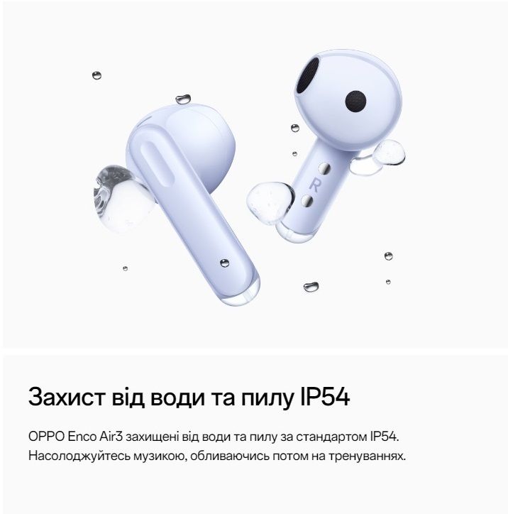 Навушники OPPO Enco Air3 – це комбінація стильного дизайну та захисту за стандартом IP54. Мають краплеподібний корпус, який легко вміщується у вухо і підкреслює ваш стиль. Функція об'ємного звучання OPPO Alive Audio та процесор HiFi 5 DSP забезпечують неперевершений звуковий досвід, який змусить вас відчувати присутність усередині аудіосцен. Модель працює за допомогою з'єднання Bluetooth 5.3, підтримує функцію Google Fast Pair.