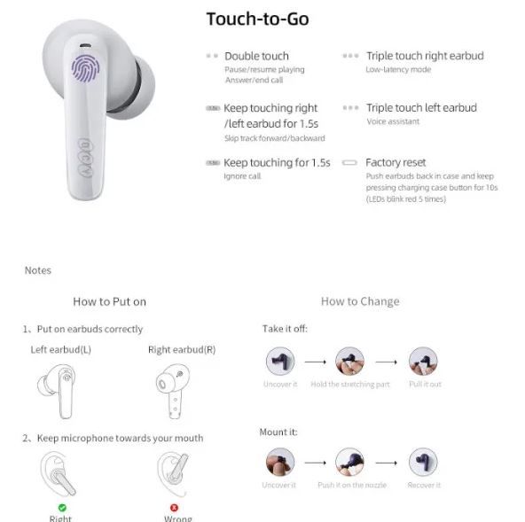 Навушники QCY T13X TWS мають мінімалістичний та стильний дизайн, що демонструє простоту без шкоди для естетики. Навушники виконані у класичному білому кольорі, що випромінює елегантність. Конструкція навушників-вкладишів забезпечує надійну посадку, що робить їх придатними для різних занять, включаючи тренування та щоденні поїздки на роботу. Компактні розміри забезпечують зручну посадку навіть за тривалого використання. Навушники також мають вбудований мікрофон, що дозволяє здійснювати дзвінки в режимі гучного зв’язку із чіткою передачею звуку.