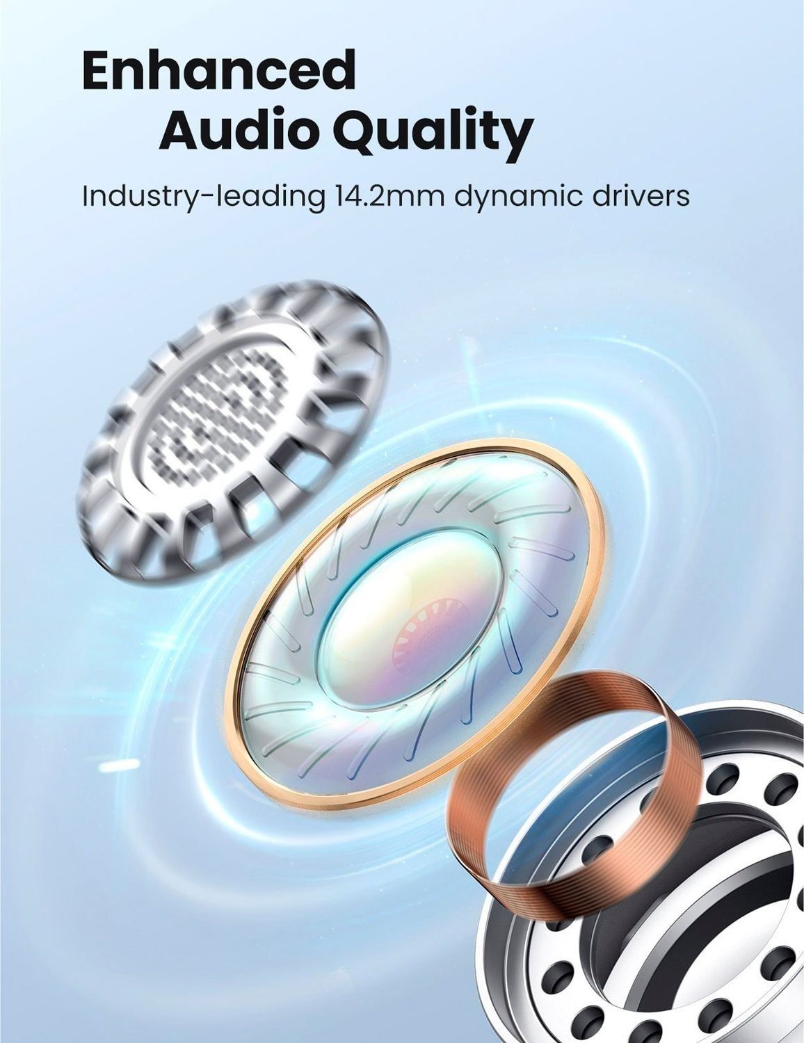 Стильні та зручні бездротові навушники з мікрофоном Ugreen HiTune T2 WS105 (80652) подарують вам звук Hi-Fi якості та допоможуть ефективно спілкуватись навіть у галасливому середовищі.
