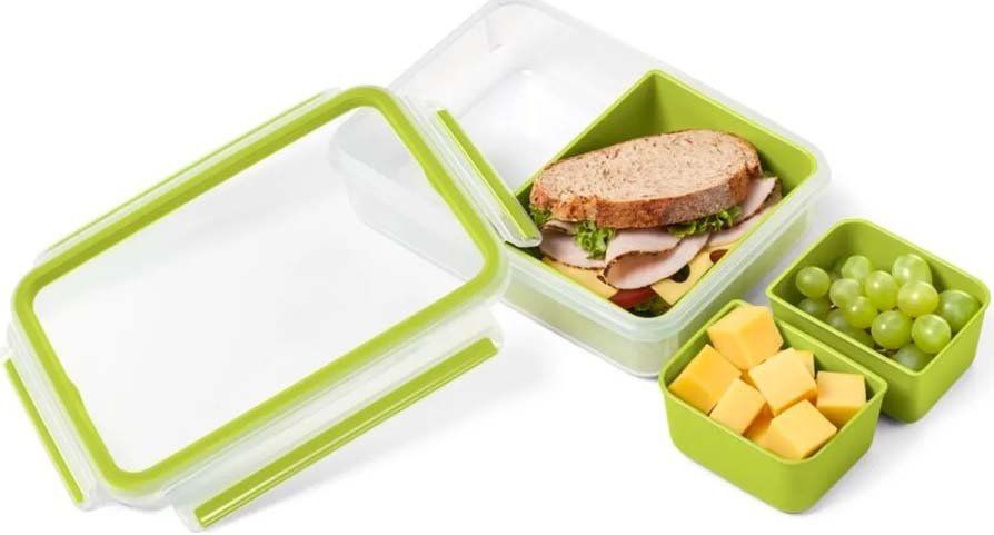 Контейнери Tefal Master Seal to Go зберігають продукти свіжими максимально довго завдяки 100% герметичності та унікальному ущільнювачу по всьому периметру кришки. 100% гігієнічність: кришка і ущільнювач міцно прилягають один до одного. Немає пустот - немає мікробів. Термін зберігання продуктів збільшується. 100% герметичність. Виключена можливість протікання. Продукти зберігаються свіжими довше. Можна використовувати для заморозки. Можна використовувати в мікрохвильовій печі. Можна мити в посудомийній машині.