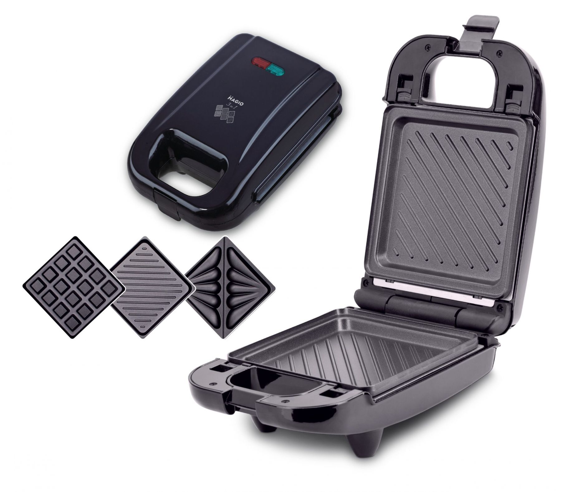 У цій бутербродниці передбачено 3 пари змінних панелей: трикутники (для приготування бутербродів трикутниками), вафлі (для приготування віденських вафель), гриль (для приготування бутербродів, як на грилі, а також овочів-гриль).
