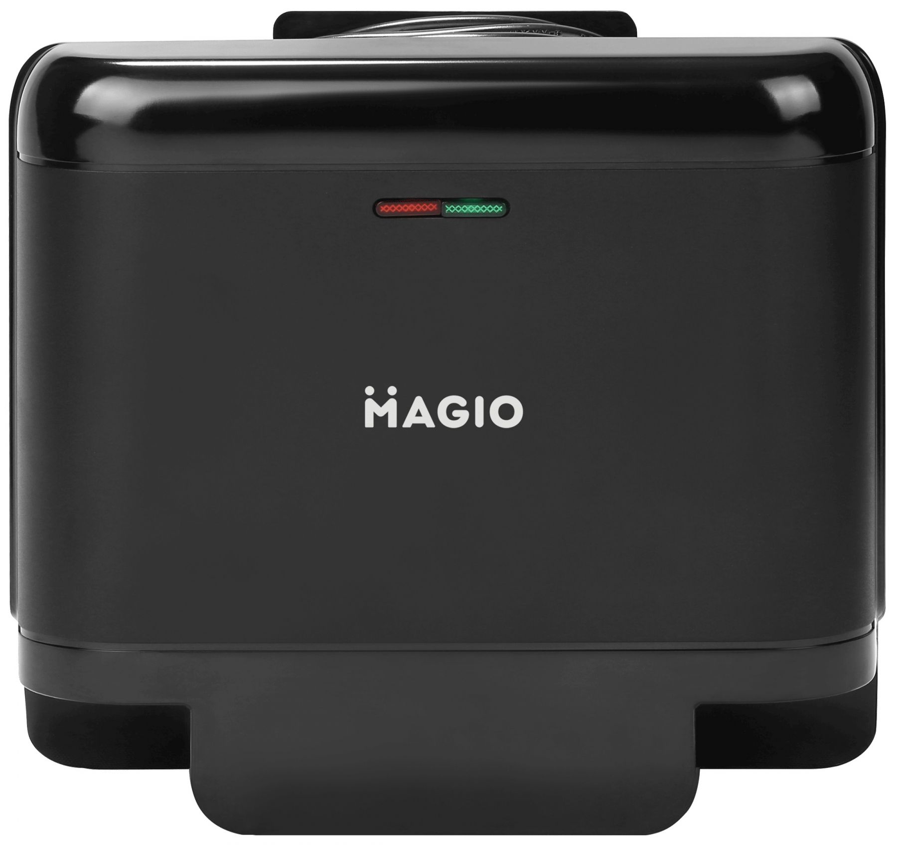 Корпус виготовлений із висококласного термостійкого пластику. Нагрівальний елемент потужністю 750 Вт забезпечить швидке і рівномірне нагрівання двох робочих поверхонь з керамічним покриттям. Бутербродниці Magio дуже зручні у користуванні, сендвічі не пригорають і легко витягуються. Завдяки компактним розмірам та фіксатору бутербродницю зручно зберігати. На кришці є світлові індикатори живлення та готовності до роботи, що полегшує контроль процесу приготування.