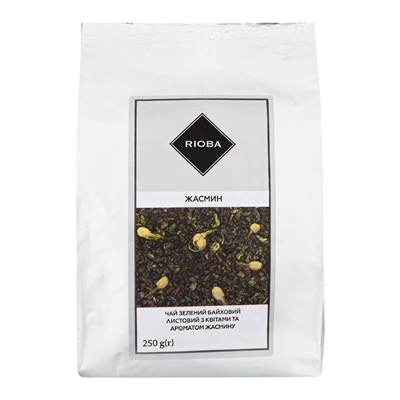 Чай Rioba зелений байховий листовий з квітами та ароматом жасмину 250г.