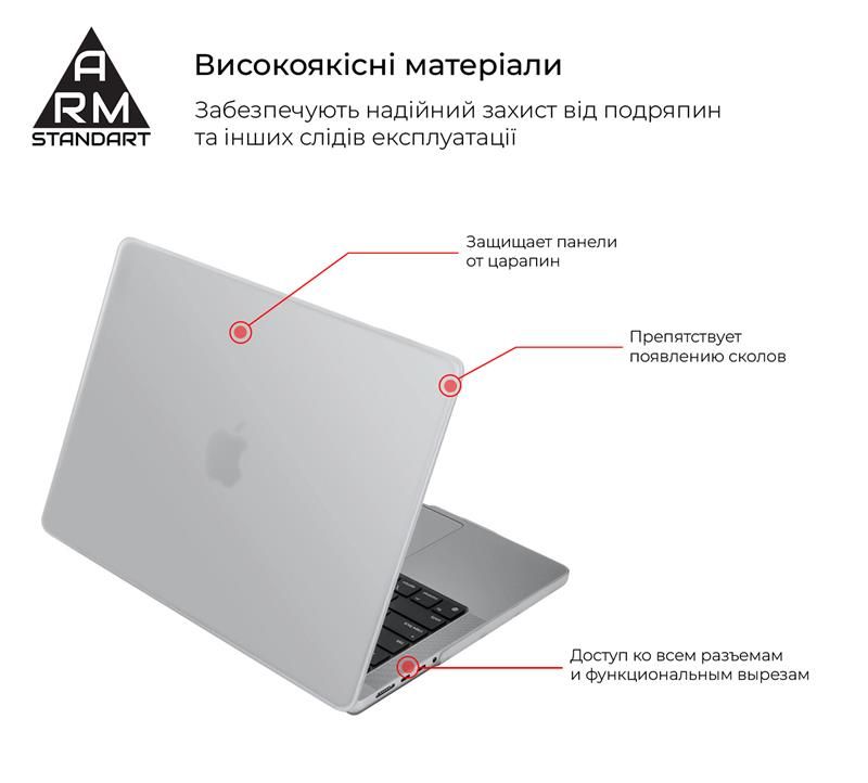Накладка Armorstandart — стильний і надійний аксесуар для Macbook. Вона виготовляється з високоякісних матеріалів і забезпечує надійний захист від подряпин та інших слідів експлуатації.