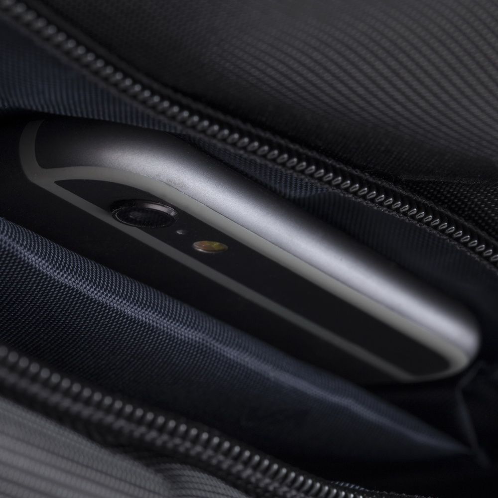На додаток до місткого центрального відділення наш чохол має зовнішню кишеню на блискавці з панеллю органайзера для мобільного телефону, візитних карток та інших аксесуарів, тому ви будете в повній готовності, незалежно від мети вашої поїздки. Асиметрична подвійна застібка-блискавка забезпечує швидкий та легкий доступ до вашого пристрою, коли він вам терміново знадобиться під час ділової зустрічі або під час подорожі.