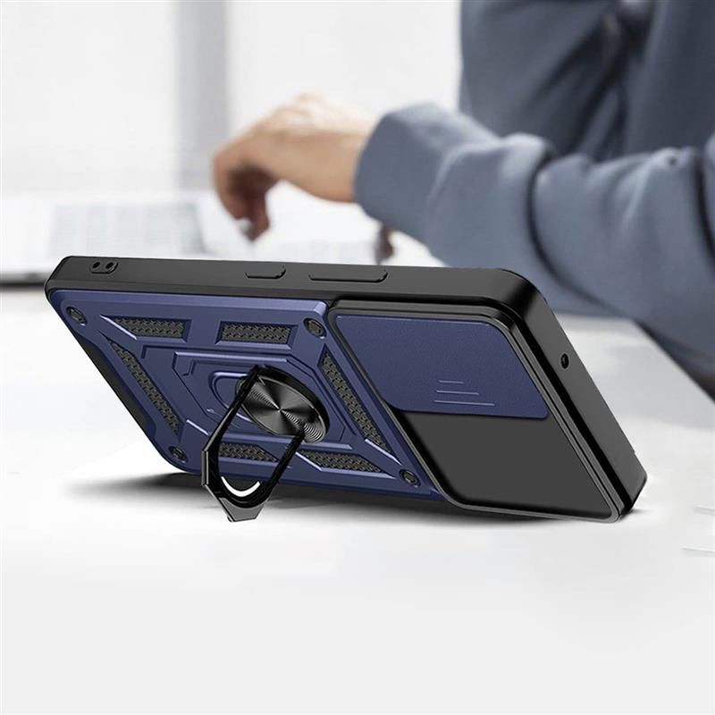 Гнучка силіконова панель має жорсткий металізований корпус і кільце-підставку для пальця. Чохол здатний витримати навіть сильні удари і подряпини.