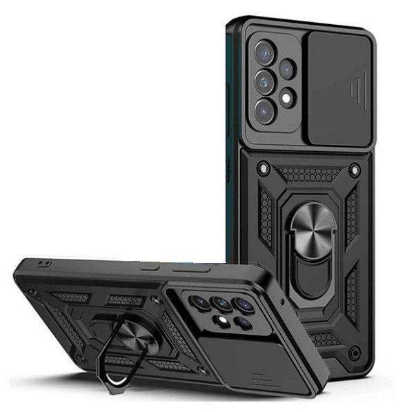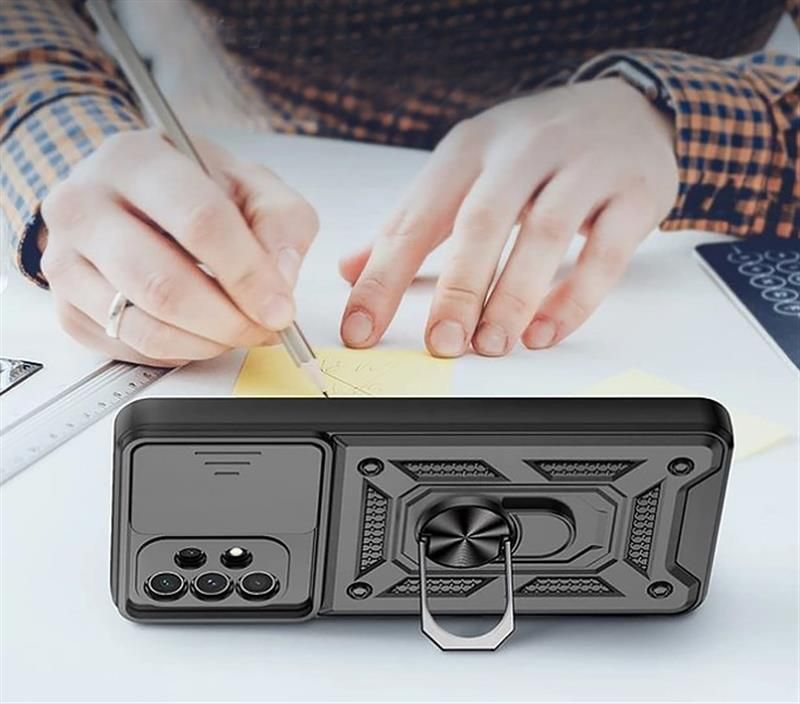 Гнучка силіконова панель має жорсткий металізований корпус і кільце-підставку для пальця. Чохол здатний витримати навіть сильні удари і подряпини.