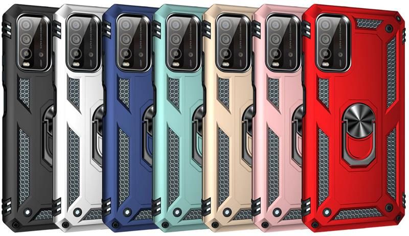 Гнучка силіконова панель має жорсткий металізований корпус і кільце-підставку для пальця. Чохол здатний витримати навіть сильні удари і подряпини.