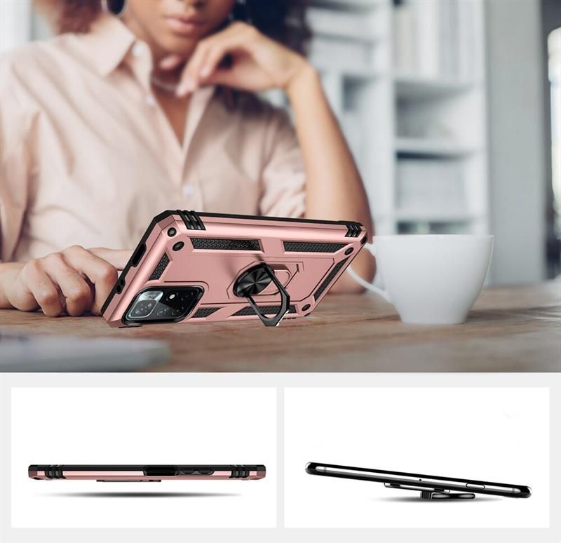 Гнучка силіконова панель має жорсткий металізований корпус і кільце-підставку для пальця. Чохол здатний витримати навіть сильні удари і подряпини.