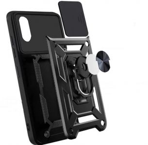 Гнучка силіконова панель має жорсткий металізований корпус і кільце-підставку для пальця. Чохол здатний витримати навіть сильні удари і подряпини.