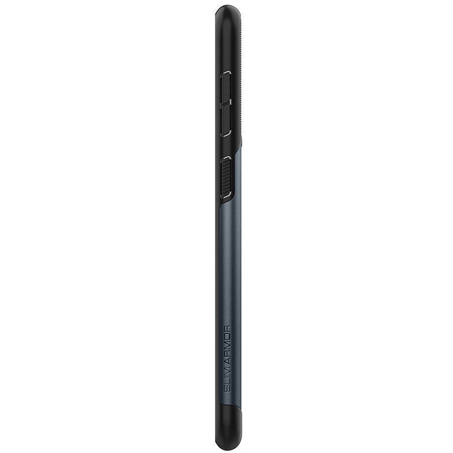 Spigen Slim Armor – це чохол-накладка преміум-класу від всесвітньо відомої компанії, який чудово доповнить зовнішній вигляд вашого смартфону і забезпечить максимальний захист корпусу. У його конструкції передбачене двоскладове компонування, де зовнішня поверхня виконана з ударостійкого полікарбонату, внутрішня - з еластичного силікону. Полікарбонатний шар має спеціальне матове покриття, яке більш приємне на дотик і забезпечує краще зчеплення з горизонтальними поверхнями. У конструкції передбачена можливість складатися в стійку підставку.
