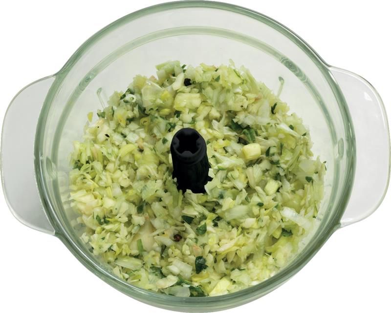 Подрібнювач можна використовувати для подрібнення фруктів, овочів, зелені або горіхів. Щоб почати подрібнення, просто натисніть на базовий блок приладу донизу. Завдяки імпульсному режиму можна здійснювати подрібнення з певними інтервалами, повністю контролюючи процес.