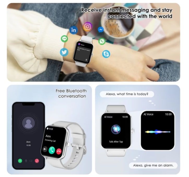 Blackview R50 підтримує дзвінки Bluetooth. Синхронізуйте його з телефоном та отримуйте новий зручний спосіб керування викликами, повідомленнями з месенджерів та соцмереж. Вбудований динамік дозволяє використовувати функцію гучного зв’язку. Керуйте музичними треками безпосередньо зі смартчасів.