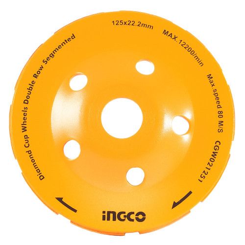 Диск шліфувальний дворядний алмазний чашковий INGCO діаметром 125 мм — чудовий робочий елемент для кутошліфувальної машини. Призначений для шліфування поверхонь із каменю, граніту, мармуру, бетону.