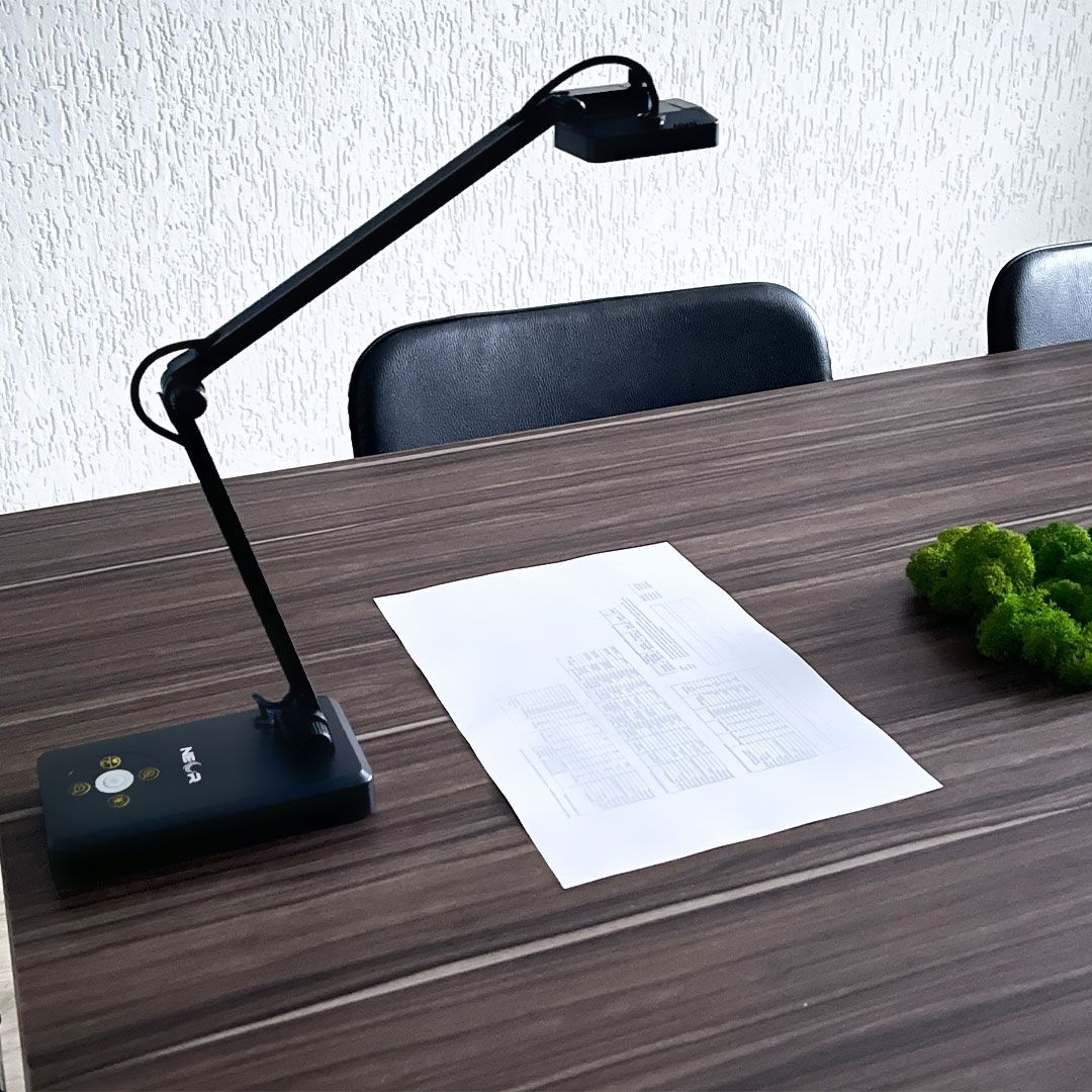 Головна родзинка цієї документ -камери – вбудований мікрофон. Вона працює з форматами до А3 . Підтримує роботу з файлами JPG, TIF, PDF, BMP, TGA, PCX, PNG, RAS, PDF, WORD, TXT. Щоб відсканувати документ формату А3 з високою якістю зображення, потрібен громіздкий і дорогий сканер. З цим завданням легко укладається документ-камера NEOR NW1000А3AF . За 1 секунду ви отримаєте зображення з роздільною здатністю 3672*2856 в зручному форматі.