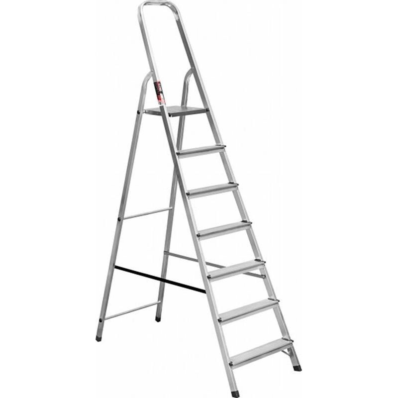 Stark SALW507 складається із 7 алюмінієвих сходинок, які зафіксовані заклепками. Ребриста поверхня сходинки запобігає ковзанню ноги для ще більшої безпеки. Верхній майданчик виготовлений з міцної сталі, він надійно фіксується в розкладеному стані. Зручно розміститися на драбині допомагає опора-ручка, за яку можна триматися, підіймаючись сходами.