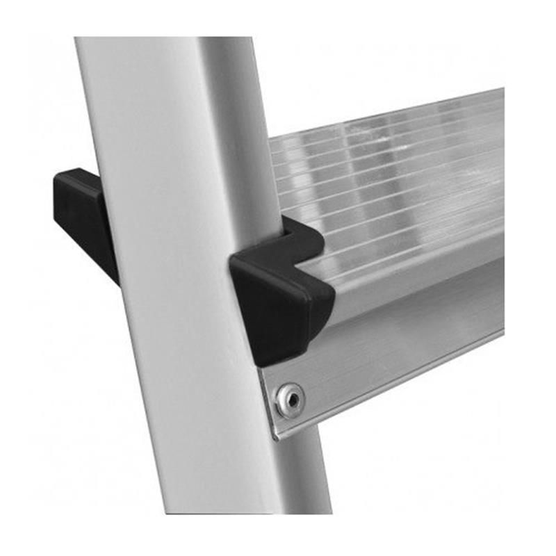 Наявність пластикових накладок на ніжки, які не дряпають покриття для підлоги, перешкоджають небажаному ковзанню драбини під час її використання.