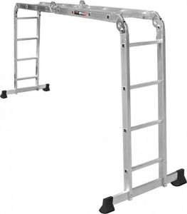 Сходи Stark 4 х 4 — виготовлена з високоміцного екструдованого алюмінієвого профілю. Це забезпечує високу жорсткість конструкції, а також здатність витримати навантаження до 150 кг. щоб уникнути ковзання, сходи укомплектовані надійними еластичними пластиковими підошвами. Сходи мають міцні рифлені щаблі, які не дадуть нозі зісковзнути. В основі функціональності сходи лежить шарнірний механізм, за допомогою якого ви з легкістю зможете встановити сходи в потрібному вам положенні.