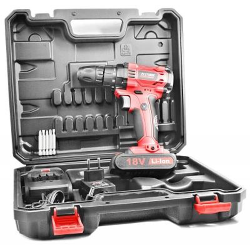 18 режимів обертання; функція «реверс», індикатор заряду акумулятора, LED - підсвічування, час зарядки акумулятора 1 годину, 2 режиму перемикання швидкості оборотів, кейс