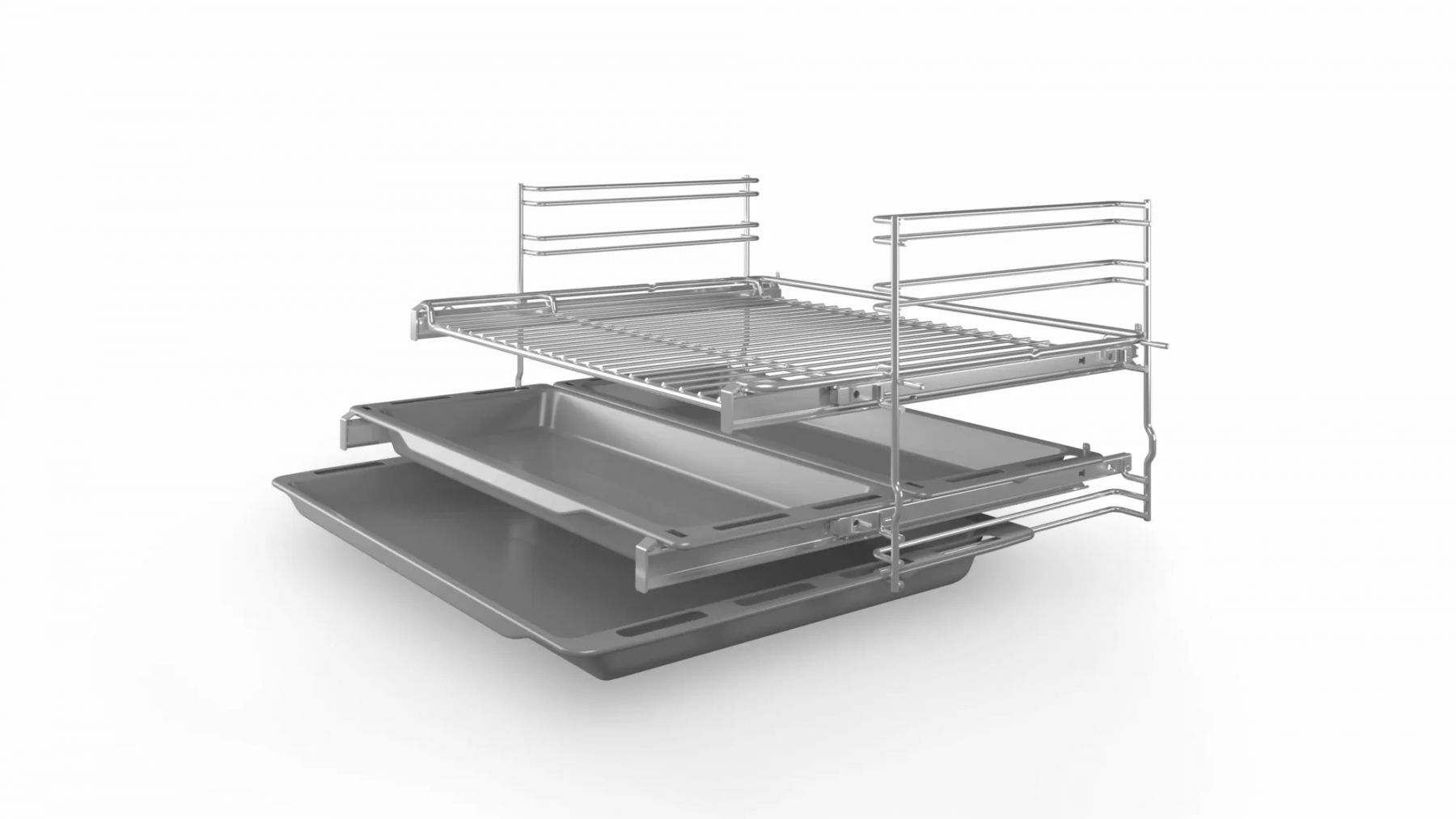 Наша система телескопічних напрямних безпечна і проста у використанні. На рівні, оснащеному телескопічними напрямними, розмістити деко зі стравою набагато легше. Вам більше не потрібно тягнутися до гарячої духовки руками, щоб швидко перевірити стан приготування.