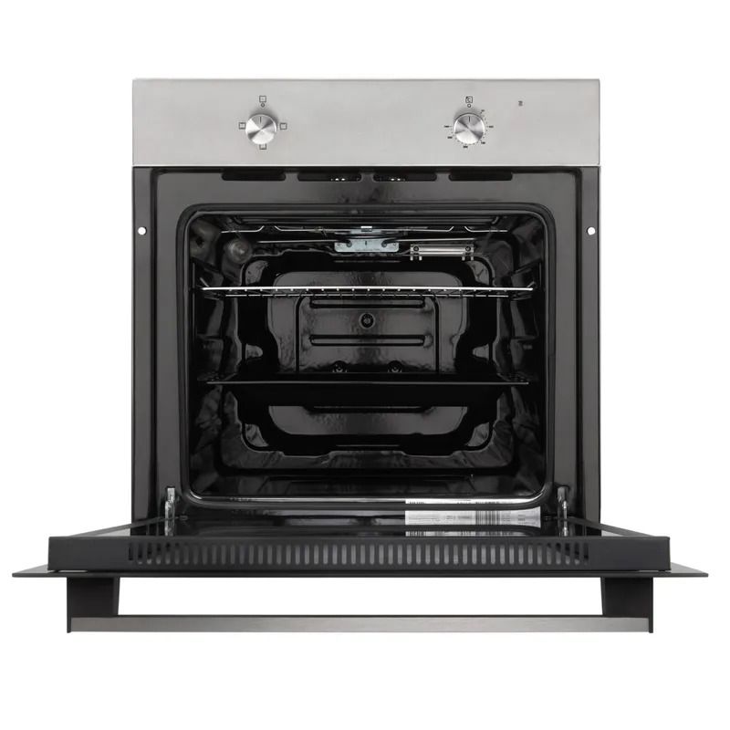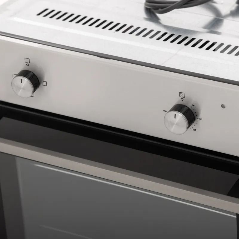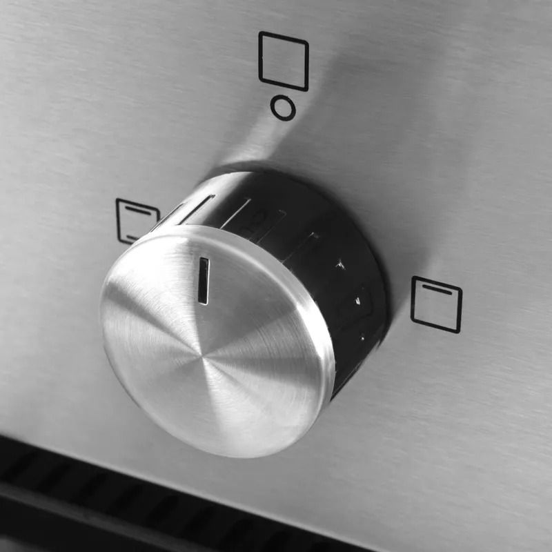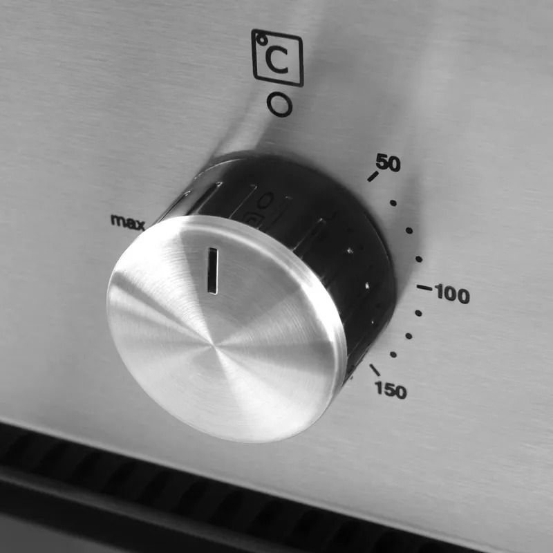 Подвійні дверцята з високоякісного гартованого скла – міцні, стійкі до подряпин та легкі у догляді. Панель керування виготовлена з довговічної нержавіючої сталі, на ній розміщені ергономічні ручки управління. Вони роблять процес приготування максимально простим та комфортним, адже ви з легкістю зможете обрати потрібний режим і температуру.
