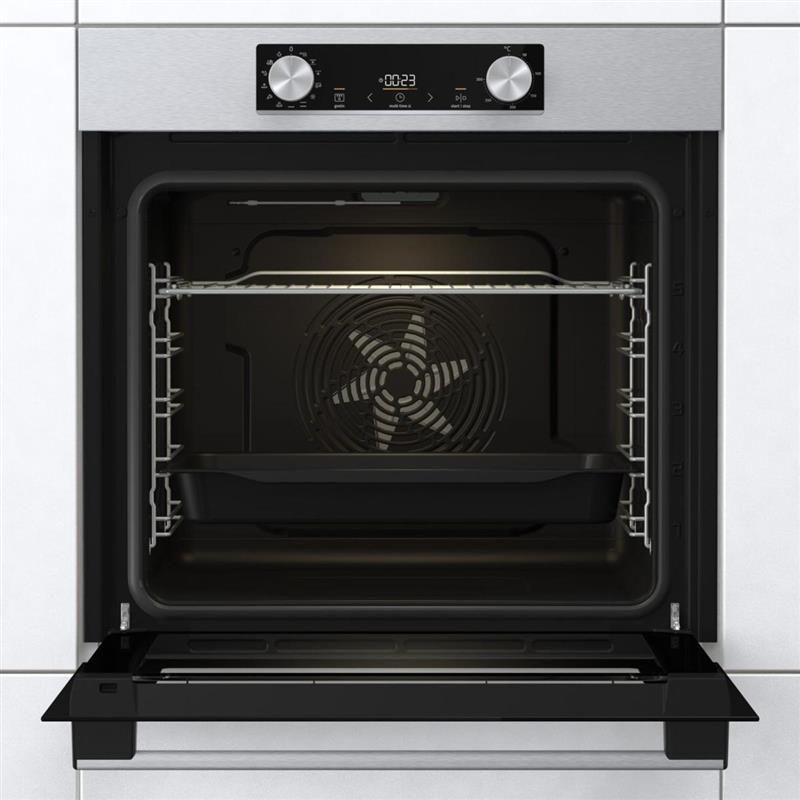 Тепер ви зможете насолоджуватися улюбленими смаженими стравами без зайвих калорій. Інтенсивний метод випікання AirFry у духовці Gorenje з використанням гарячого повітря не потребує додавання жиру для досягнення хрусткої золотистої скоринки. Підходить для смаження малих шматків м’яса, риби, овочів і заморожених напівфабрикатів, як-от картопля фрі та курячі нагетси.
