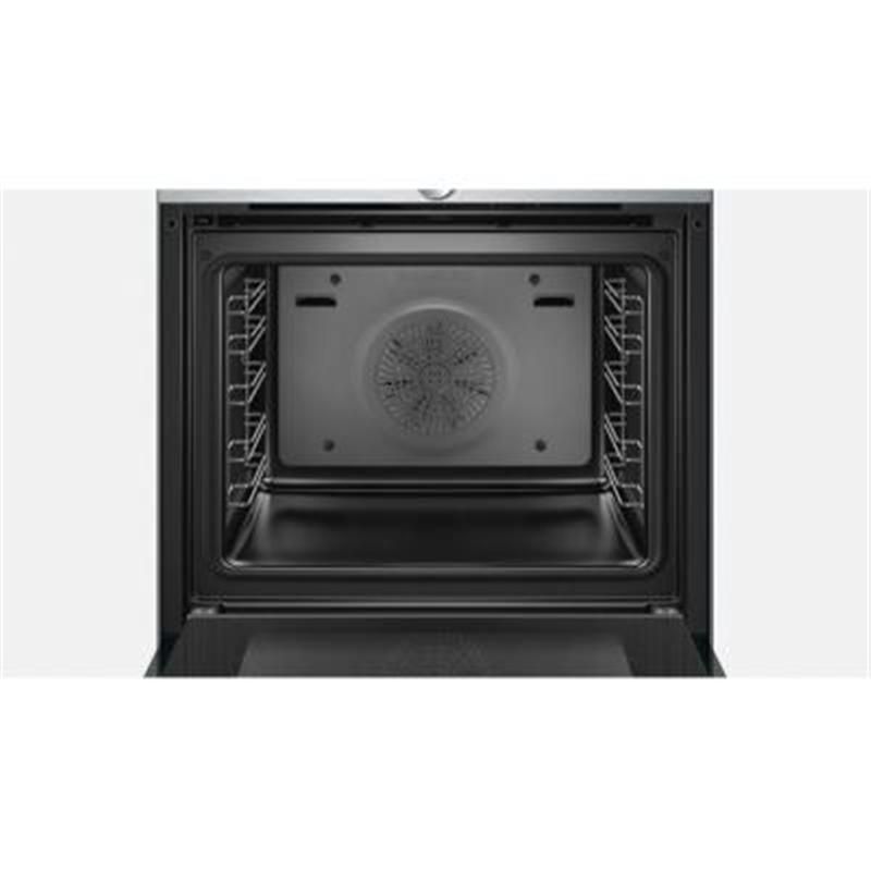 Духова шафа Siemens HB 636 GBS1 (HB636GBS1) - функціональна електрична духова шафа, за допомогою якої можна легко і швидко приготувати безліч найрізноманітніших страв. Внутрішнього обсягу в 71 л цілком вистачить для одночасного приготування на кількох рівнях або запікання великих порцій або птаха. Крім багатого функціоналу дана модель також відрізняється стильним і привабливим дизайном, в якому вдало поєднуються строгу чорну скло і матова нержавіюча сталь, що буде гармонійно доповнювати і прикрашати будь-який сучасний кухонний інтер"єр. Для приготування страв можна скористатися одним з 13-ти режимів нагріву, серед яких є конвекція, традиційний нагрів, гриль великої і малої площі, ловлення, режим Піца і ін. Програма coolStart дозволяє починати процес приготування без попереднього нагріву духовки. А спеціальна функція cookControl + допоможе кулінарові-початківцю приготувати справжні кулінарні шедеври. CookControl Plus, при виборі страви, автоматично налаштовує необхідний режим нагріву, тривалість і температуру приготування, а також гарантує неперевершені результати. До того ж, в духовці Siemens HB 636 GBS1 реалізована новітня технологія 4D-нагріву - спеціальний вбудований вентилятор особливої ??конструкції, обертаючись поперемінно в двох напрямках, гарантує більш рівномірний розподіл гарячого повітря по всьому внутрішньому об"єму духовки, завдяки чому тепер не важливо, на якому рівні стоїть противень, блюдо приготувється рівномірно з усіх боків. Кольоровий сенсорний TFT-дисплей дозволяє не тільки швидко вибрати необхідні параметри приготування, а також дає можливість поградусной регулювати температуру нагрівання від 30 ° C до 300 ° C. А попередня функція Шаббат після закінчення приготування автоматично переведе духовку в режим автоподогрева і збереже Ваше блюдо гарячим від 24-х до 72-х годин. Духовка Siemens HB 636 GBS1 має електронний таймер, який повністю відповідає за тривалість приготування і при закінченні заданого часу відключає нагрів духовки, подаючи звуковий сигнал. Але це ще не все. Таймер також дозволяє налаштовувати тривалість і точний час закінчення приготування, що передбачає автоматичний запуск з відстрочкою старту
