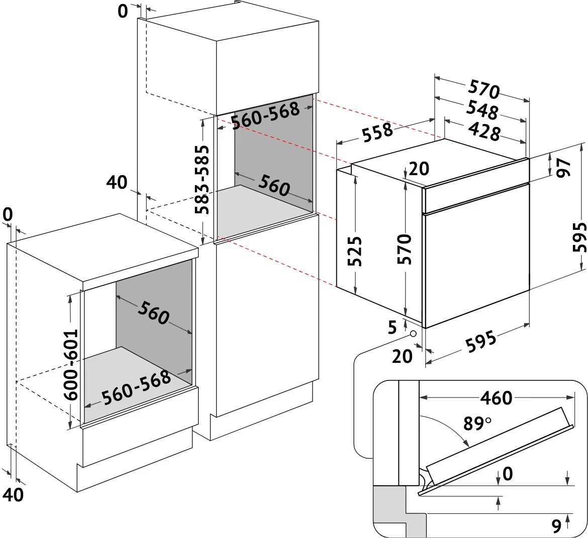 Габарити вбудовування (ШхВхГ):560-568 х 583-585 х 560 мм