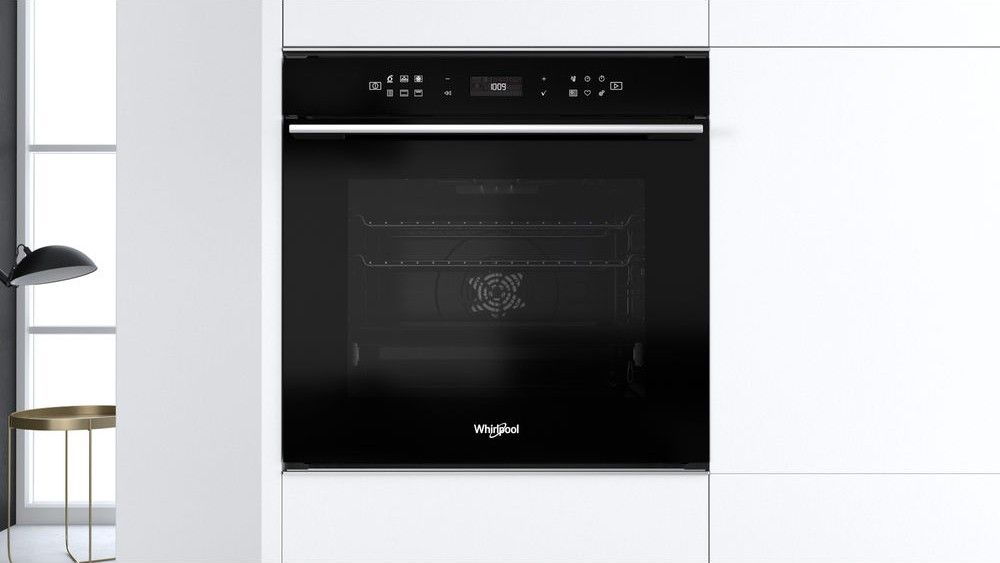 Ця духова шафа Whirlpool має слайдерну систему полиць для зручності використання.