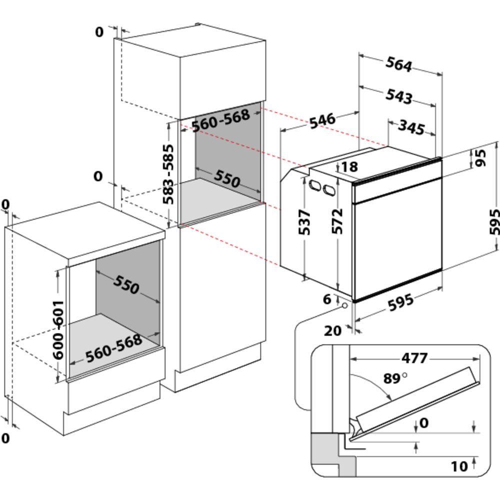 Габарити вбудовування (ШхВхГ):560 х 600 х 550 мм