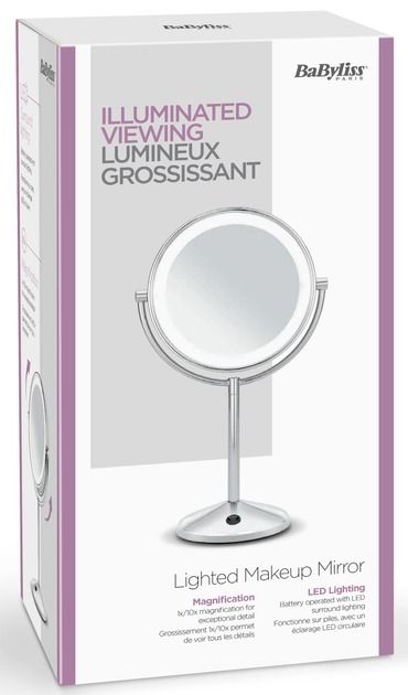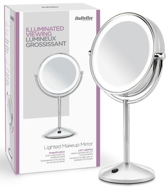 Ваш ідеальний помічник у створенні бездоганного образу - косметичне дзеркало BABYLISS 9436E. Цей вишуканий аксесуар оснащений галогенним підсвічуванням, що імітує холодне світло неону, забезпечуючи чітке відображення без спотворень.