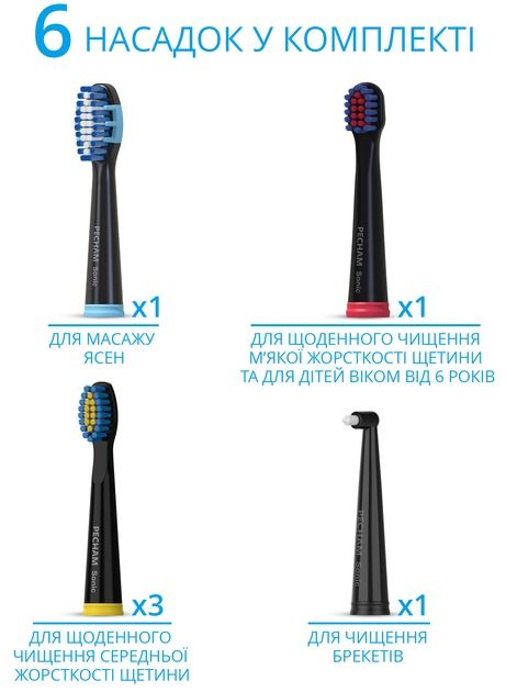 Зубна електрощітка доступна із трьома змінними насадками. Цього запасу вистачить одній людині на рік. А якщо вони призначені для всієї сім’ї, то в нашому інтернет-магазині можна придбати додаткові аксесуари в міру потреби.