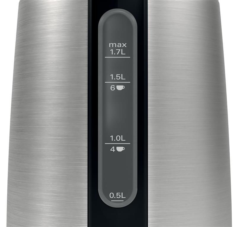 Ідеальна шкала наповнення, що знаходиться під ручкою. За допомогою такого розміщення завжди чітко розумієш, яка кількість води знаходиться в чайнику.