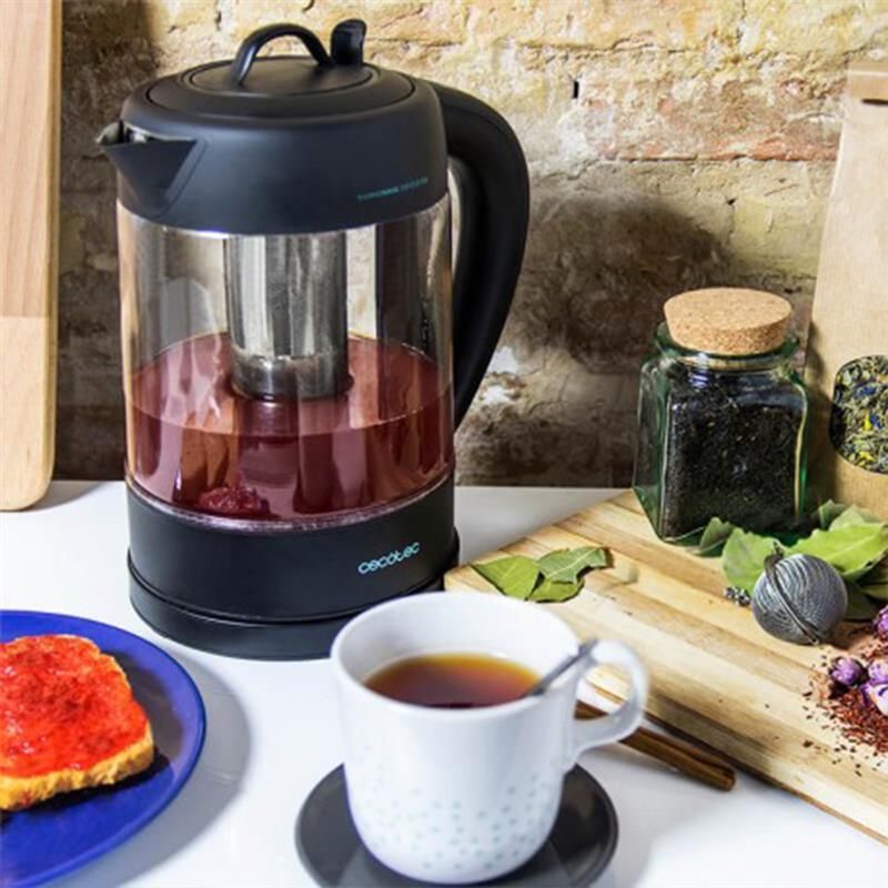 Електрочайник CECOTEC ThermoSense 390 Clear нагріває до 8 склянок по 200 мл одночасно. Також його можна використати, щоб нагрівати воду, зробити рис, пасту, супи і навіть пюре. Чайник ThermoSense з місткістю 1,7 л і потужністю 2200 Вт заощадить ваш час і допоможе швидше насолодитися улюбленими напоями. Корпус розроблений з використанням високоякісного загартованого ударостійкого боросиликатного скла, воно не пропускає запахи і не містить BPA і інших токсичних речовин.