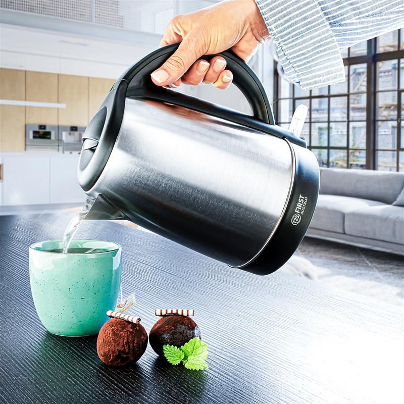 Це чудовий спосіб почати день: блискучий чайник з нержавіючої сталі миттєво нагріває воду у великому глечику об’ємом 1,7 літра, забезпечуючи кількох людей чаєм, кавою фільтрованою або закусками. Навіть дитяче харчування можна приготувати у найкоротші терміни. Бездротова каструля з ергономічною ручкою, призначена для швидкого керування однією рукою, може бути розміщена на базовій станції з усіх боків. Так само зручно як правшам, так і лівшам.